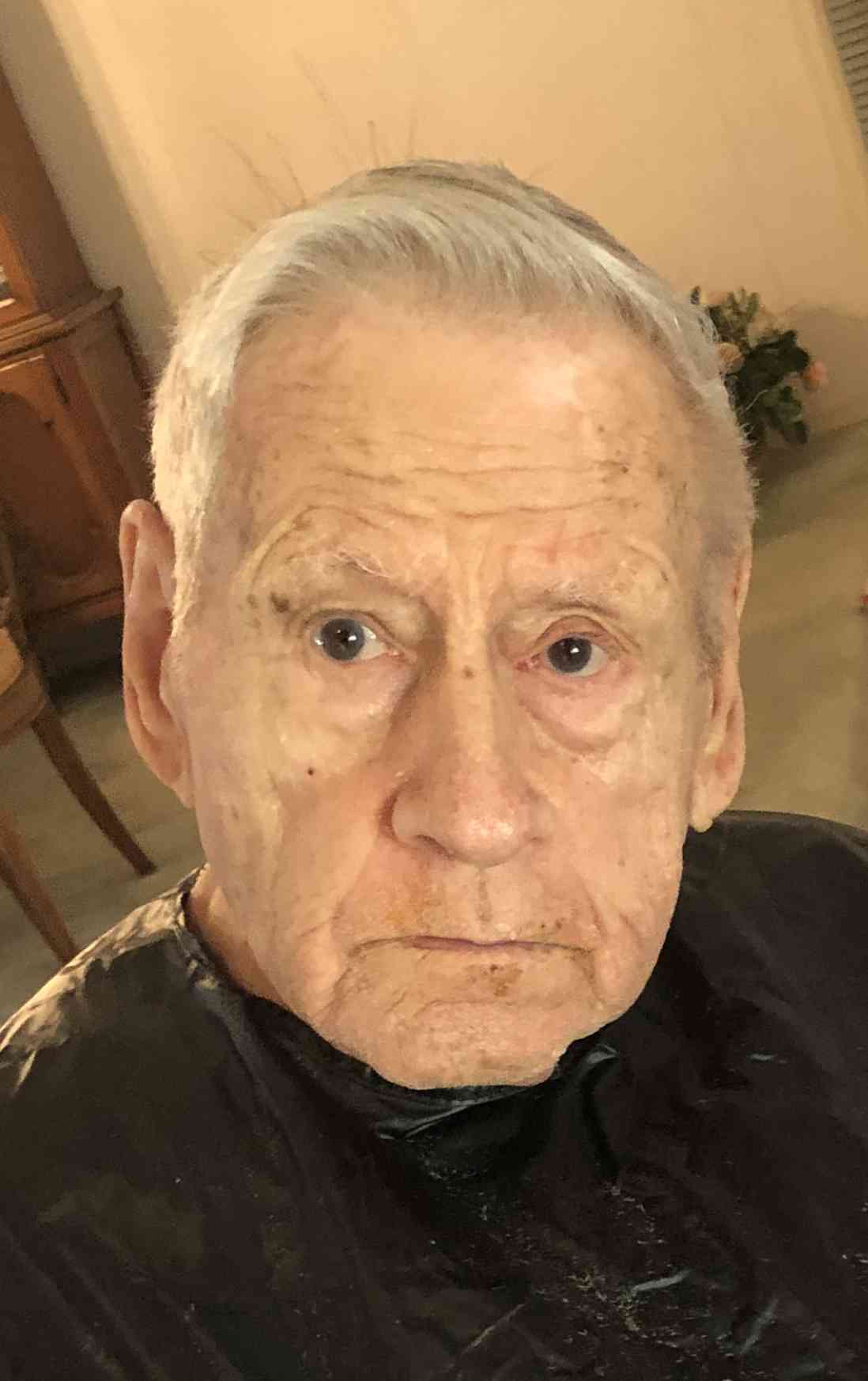 Our stylist came to this elderly man to do a haircut in North Palm Beach, Florida.