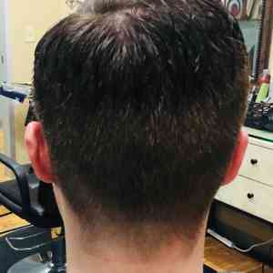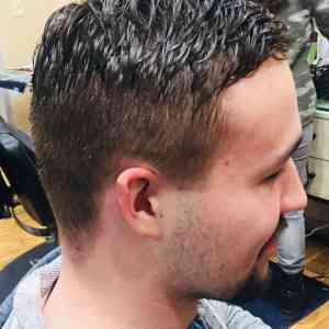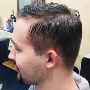 Returning long time happy client, Benjamin Mason, Savage, MN. We did a shorter crew cut up the sides and back. Then, took about an inch off the top with a shears, and blended the top with the sides using clipper over comb technique. Styled with Redken Gel.