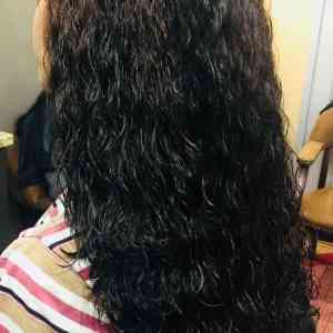 Was fun giving Trinity Lor or Maple Grove a spiral perm as she had lots of hair to work with! Used loop rods, or "tensive" rods, giving her hair more spring in her curls and texture. Squeezed out most of the moisture with a towel to refrain from getting frizz, and let her hair air-dry style.