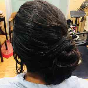 Had the pleasure of doing this young lady, Abby Salmeron's, hair for prom, Apple Valley, MN. We did a low, side bun, wrapping and pinnng up her beautiful dark locks. Also, softened the style by bringing down some side-framing pieces, and curling them.