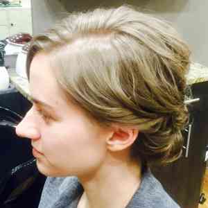 Side swept and curled updo for prom, Sarah Somar, Burnsville, MN