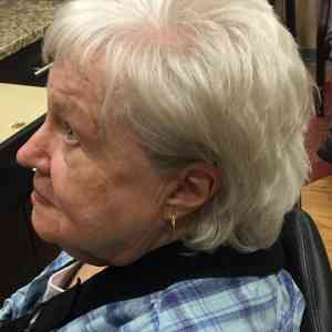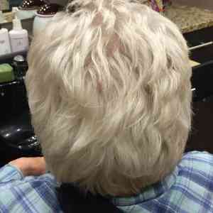 Nancy Gehrke, Apple Valley, MN, in need of a shampoo and style, as she just recently had shoulder surgery making it difficult to shampoo her own hair. Wonderful client! Styled with Lanza Thickening Treatment Spray in her roots and Biosilk Silk Therapy on her ends. Used a medium size round brush to slightly smooth out her bangs and crown area. Finished with Redken Rough Paste on her ends for some added texture, and used Lanza Final Effects Hairspray.