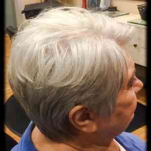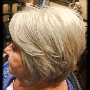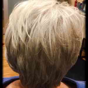 Kari Pflughsaupt, Apple Valley, MN. We did a short asymmetrical haircut, with chin length on the left side, and up over the ear on the right side. We used a feather razor to give her an edgy cut. Styled with Lanza Thickening Treatment Spray, and Neuma Smoothing Crème on her midshaft to ends. Blow dried with a medium size round brush, and finished with Redken Rough paste through her ends to give her a piecy look. Also, added a touch of shine with Chi Shine Fusion.