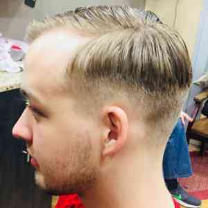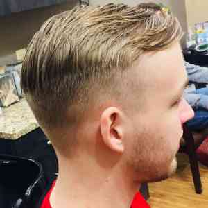 Returning long time happy client, Alex Mason, Savage, MN. We did a short crew fade up the sides and back. Then, took about a half inch or so off the top, and blended with the sides. Styled with Redken Rough Paste.