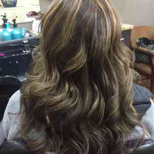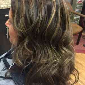 Fabiola Espinoza, Lakeville, MN. Gave her a rich chocolate brown base, and touched up her previous caramel highlights. Pulled some of her base color through her ends to freshen up her color as well. Trimmed her length and layers. Styled with Lanza Thickening Treatment Spray in her roots, and applied Neuma Smoothing Crème on her midshaft to ends. Blowdry styled with a paddle brush, and curled with a 1 inch curling iron. We applied Lanza Thermal Defense Spray to each section before curling to protect her hair from heat, and also make long-lasting curls. Finished with Chi Enviro Hairspray.