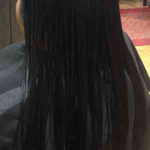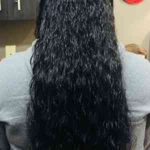 Before and after pics of long-haired spiral perm on Daniela Orozco of Brooklyn Center. We used loop rods, or "tensive" rods to give her a little more texture and curl in her hair. We also took about an inch off her length to freshen up her ends after the perm. After squeezing most of the moisture out of her hair with a towel , we let her hair air-dry style.