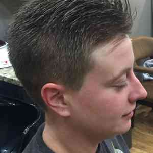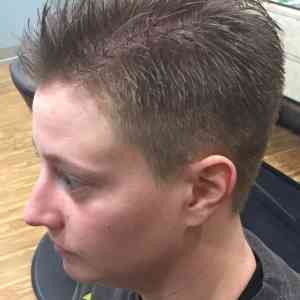 Happy client, Kayla Penrod, Apple Valley, MN. Gave her a clean and faded haircut, using a clippers with attachments around the ears and back of the head. Then, did the clipper over comb technique to blend top with the sides. And, finished trimming the top with shears and comb. Styled with Redken medium hold gel.