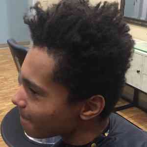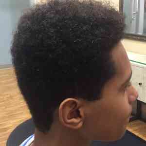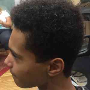 Kennedy Gibbs, Farmington, MN. Used clipper with guard up sides and back, and scissor cut the top. Then, blended the sides and top with clipper over comb technique. Also used clipper over comb technique on the top to give more of a finished look. Edged around ears and nape with trimmer. (Before pic on bottom)